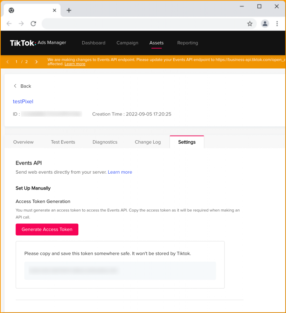 Activate TikTok Events CAPI: Generate an access token using TikTok Ads Manager