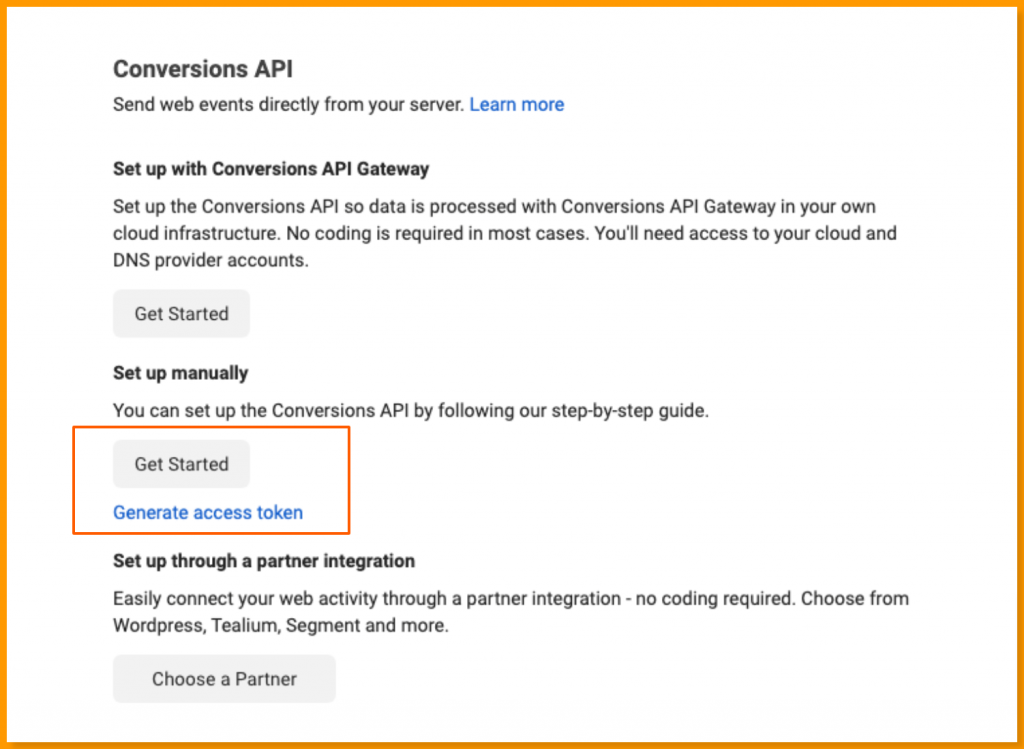 Activate FB CAPI: Generate an access token using FB Events Manager